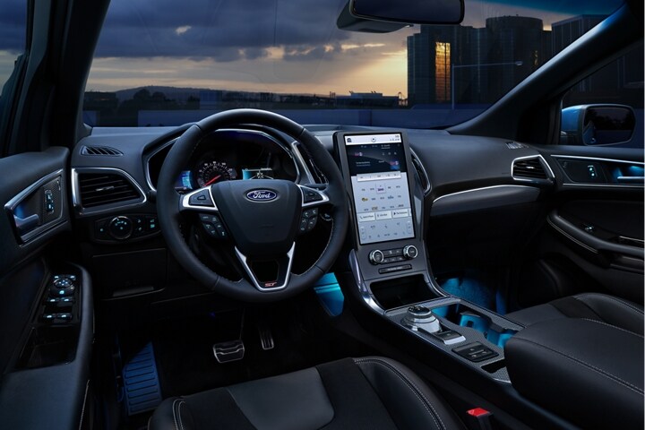 For 2021, the Edge is available in five trim levels: the SE, SEL, ST-Line, Titanium, and ST. All trim levels have a few things in common, such as automatic LED headlights, LED taillights and daytime running lamps, a body-color rear spoiler, and privacy glass. If you upgrade to the second-level SEL or above, a Panoramic Vista Roof is available. A roof rack is also available on the top four trims, along with LED fog lamps. Each trim has its own combination of door handle, side rail, grille, and beltline colors. Finally, on the Titanium and ST, you can have the convenience of a foot-activated rear liftgate.