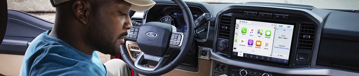 The Ford F-150 runs with your choice of all-season or all-terrain tires and two-wheel or four-wheel drive. On top of that, it features hill start assist, power rack-and-pinion steering, trailer sway control, and up to eight selectable drive modes: normal, eco, sport, tow/haul, slippery, trail, deep snow/sand, and mud/rut.
